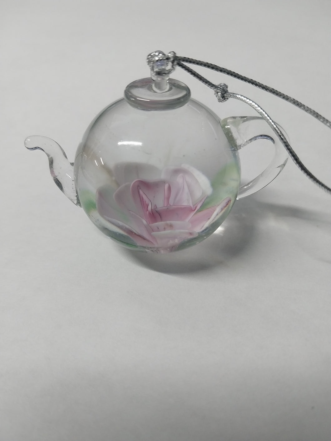 Our dainty flower teapot ornament is sure to invoke wonder and fill you with intrigue. Dynasty Gallery artisans use the lampwork technique of slowly melting down glass rods in minute amounts to create delicate and highly detailed Glassdelights designs.
